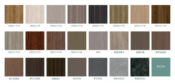 截至11月中旬,华洲已完成8大系列饰面花色配置,囊括了木纹、布纹、石纹、皮纹、极致、个性、靓彩、金属系列,工艺涉及时兴的UV高光、超哑肤感等。