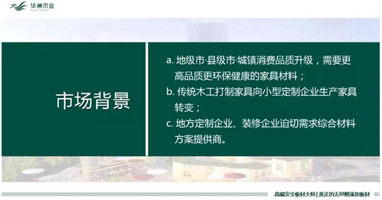 针对从一线市场反馈回来的这些问题,华洲计划《地方性定制合作伙伴扶持方案》、推行共享品牌+孵化器模式,确立了“品牌板材商(华洲)”与“地方性定制企业”的命运共同体。