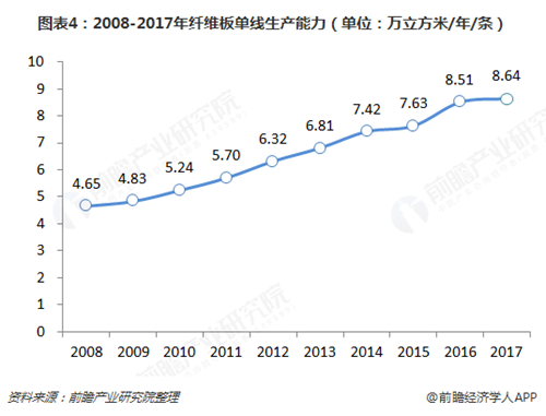 纤维板产业是所有人造板制造中自动化程度最高的板类产业,单条生产线平均产能已达到8.64万立方米/年(2017年数据),规模化及集约化优势明显,加之原料广泛,使得纤维板性价比更高,深受广大用户青睐。