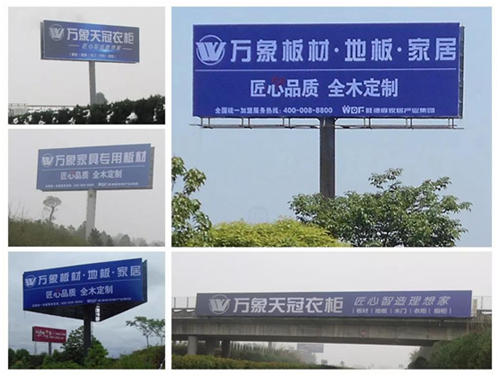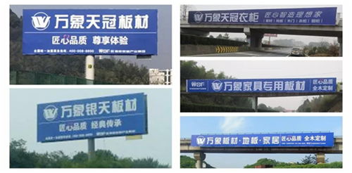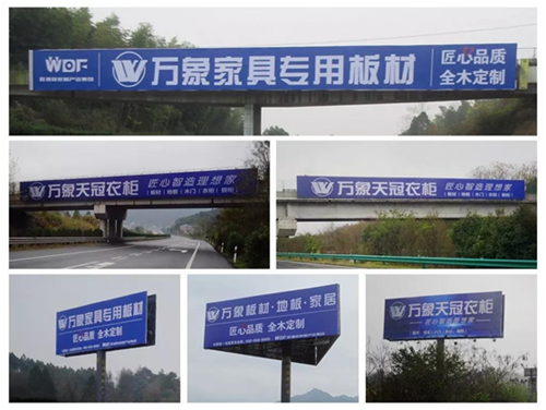 2019年1月,万象品牌在京珠、沪昆、瑞杭、潭衡西、娄怀等多个经湖南省内的主要高速路段投放广告,这是为实施品牌战略,打响品牌知名度,并落实对经销商广告扶持而斥资投放的广告。