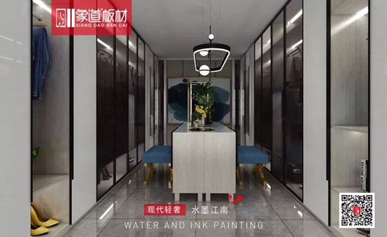 配搭:灰黑色系板材、灰白色色系板材、玻璃铝框柜门、板式轻奢铝框门