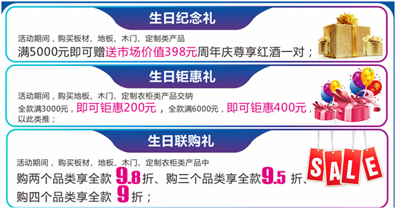 活动期间,购买板材、地板、木门、定制类产品,满5000元即可赠送市场价值398元红酒一对;