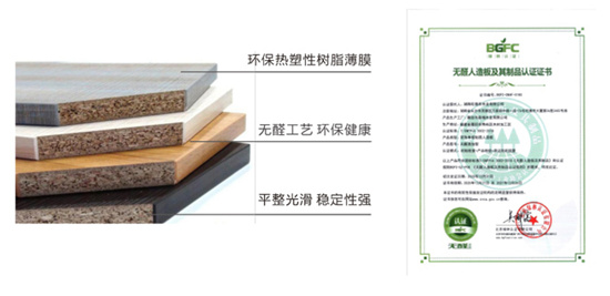 万象无醛级实木颗粒家具板是一款高端环保型板材,经过国家家具产品质量监督检验中心严格检验,甲醛释放量远远优于国家标准。采用非醛类热塑性树脂胶合板制造技术,环保热塑性树脂薄膜,无游离甲醛释放,结合先进的制造工艺,最大限度保留木材本身的纹理及原木质感。