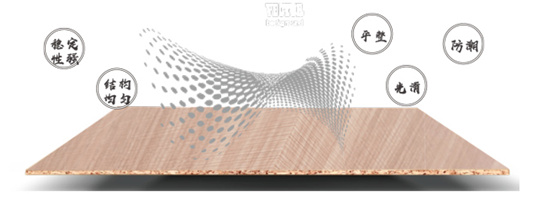 选用国际严格的F4星健康标准,甲醛释放量不超过0.3mg/L,可在室内不限量使用。板内木质纤维颗粒较大,多为交叉错落结构的颗粒状,能更多地保存木材的天然质地。严格的甲醛释放量控制标准,领先环保水平,基材表面均匀细腻、平整光滑,结构均匀,物理力学性能指标优良,厚度偏差小,规格多样,防潮性能优越,吸水厚度膨胀率指标优于国标标准,适宜各类表面装饰加工。