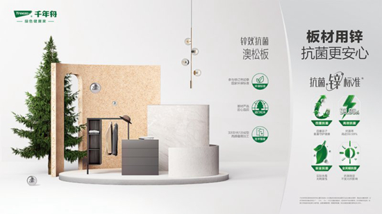 4月28日千年舟发布锌效抗菌系列新品。可有效抑制大肠杆菌、金黄色葡萄球菌、铜绿假单胞菌、肺炎克雷伯氏菌四种菌种生长,抗菌效率可达99.99%。锌效杀菌具有全天候抗菌的特性,且表现出很强的杀菌活性。千年舟本次产品抗菌升级,基板与饰面板都有所涉及。升级后的基板有锌效抗菌澳松板、锌效抗菌LSB高能家居板,饰面板有锌效抗菌天然豆香生态板、锌效抗菌生态板和锌效抗菌家具生态板。