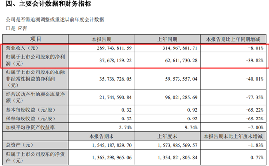 2022年8月24日,中旗新材发布2022年中期报告全文。报告显示,2022年上半年,中旗新材实现营收2.90亿元,同比下降8.00%;净利润3767.44万元,同比下降39.82%;实现归属于上市公司股东的净利润3767.82万元,同比下降39.82%。由于受到疫情、房地产行业发展速度放缓、原材料价格上涨以及运输成本增长等因素持续影响,行业利润率下行压力较大。