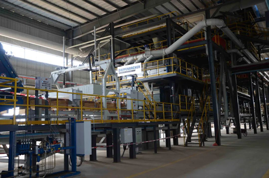 要达到这个强度,核心在于改变刨花的形态和铺装结构。华洲应用了网状纵横结构进行铺装,反复试验,不断调整刨片大小厚薄、铺装定向度、胶水比例,最终得出最佳配比,让板材结构更加稳定,具有更强大的力学性能。为此华洲花了一千多万改进生产设备。