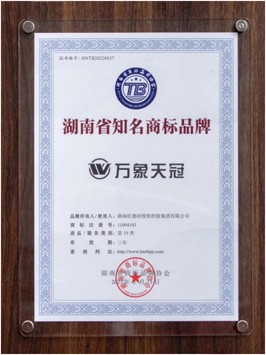 此次会议,湖南旺德府投资控股集团有限公司旗下万象天冠品牌荣获“湖南省知名品牌”称号,这是对旺德府集团万象天冠品牌实力和品质的充分肯定,也是广大受众对品牌的支持和认可,彰显了万象天冠品牌在区域影响力及行业号召力。