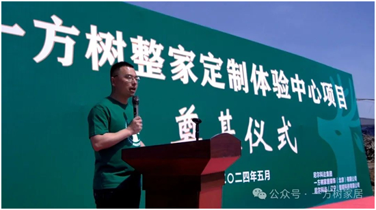 尼尔科达集团董事长、一方树家居创始人隋明东先生走上舞台,发表讲话。他的声音坚定而又充满激情,传达出对未来的美好期许:今天,我们在这里播下希望的种子,明天,这里将长成参天大树,成为我们的梦工厂。
