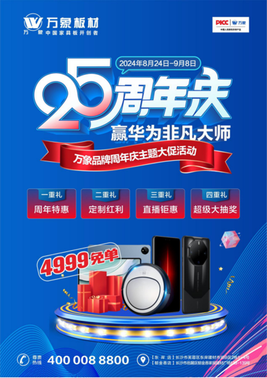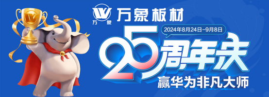 岁月悠悠,匠心筑梦。在这个硕果累累的美好时节,万象板材迎来了其辉煌历程中的又一个重要里程碑——25周年庆典。值此25周年庆典之际,万象板材心怀感恩,特推出“万象25周年庆主题大促活动”,万象板材精心准备了一系列超值优惠与精彩活动,诚邀您共襄盛举。