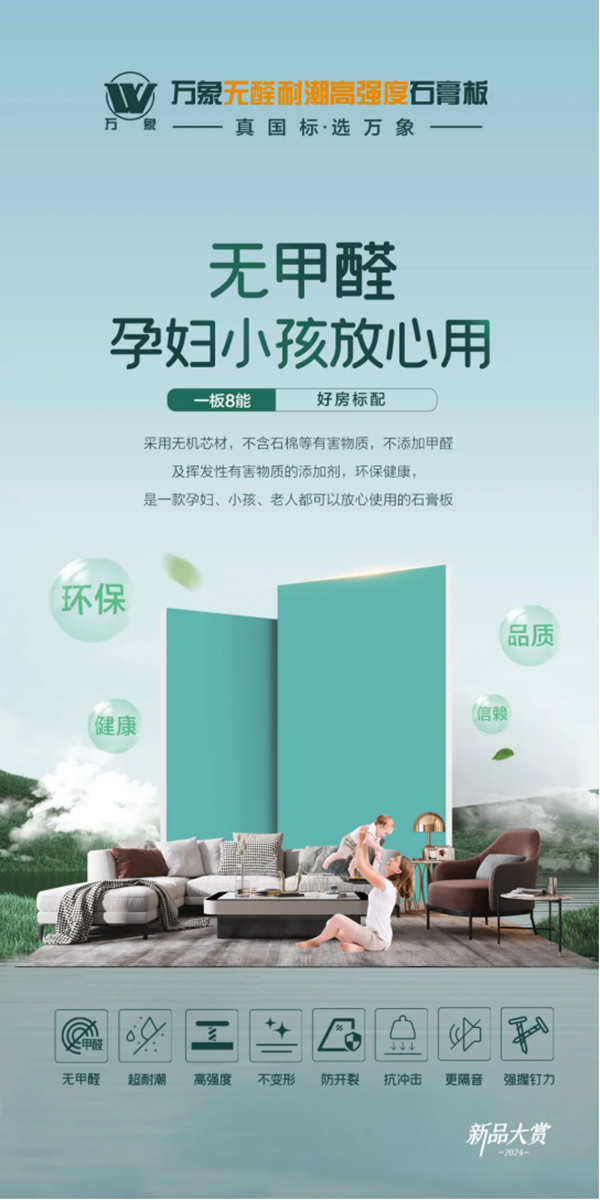 一板8能 好房标配丨万象无醛耐潮高强度石膏板荣耀上市