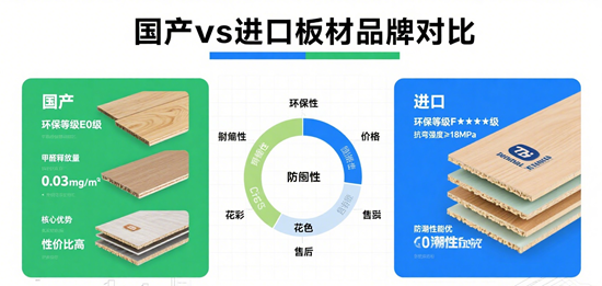 结论:国产板材在原材料纯净度和功能性工艺上更贴合中国家庭需求(如南方防潮),进口品牌则通过回收料技术平衡成本与环保。