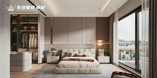 家居的艺术,从来不是单一元素的堆砌,而是材质与空间、功能与美学的共生共鸣。东冠皇冠板材将木材的天然肌理与现代设计美学深度融合,让每一块板材都成为承载生活温度的艺术载体。无论是客厅的柜体陈设,还是卧室的收纳空间,亦或是书房的静谧角落,其板材自带的天然纹路与细腻触感,能轻松适配不同空间的设计调性,在光影流转间勾勒出空间的层次感与高级感,让家不再是简单的居住场所,更成为一座藏着日常诗意的生活美术馆。