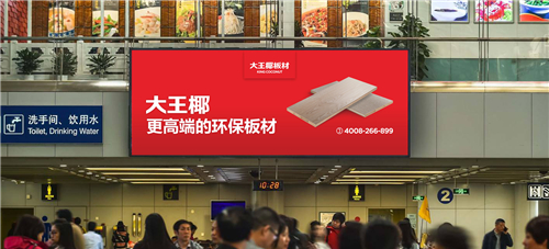 为了能够迅速大范围内传播品牌,提高品牌知名度,大王椰进驻品牌宣传高地,在全国范围的小区公告栏、电梯内、公交车、天桥、高炮等户外范围内大力投放广告。全面提高消费者对大王椰板材的认知度,以高端的品牌形象,凸显大王椰品牌高端定位,以强烈的视觉冲击效果,让人过目难忘。同时,增加与消费者及意向客户的接触点,极大促进终端销售渠道良性循环发展。