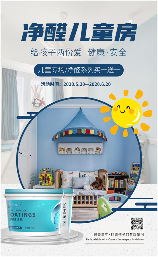 贝尤安始终立足于绿色健康产业,专注于高品质贝壳粉涂料的研发与生产,帮助客户打造健康舒适、安全无毒的儿童房,致力成为每位孩子成长过程中的守护天使!