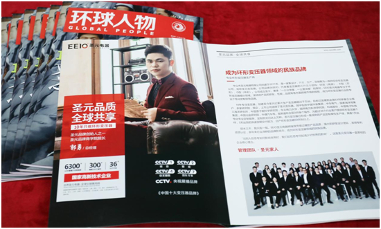 《环球人物》具有强大的覆盖优势,全国发行量几十万份,各大城市报摊有售,邮局订阅量大。同时,《环球人物》已进入全国星级客户期刊展示网络,不仅在全国1000家三星级以上酒店有展示,而且在北京、上海、广州、深圳等四大城市的15,000多个高档写字楼也有展示。所以,此次EEIO圣元电器登上《环球人物》期刊,不仅是其品牌知名度不断提升的表现,也是品牌实力最好的诠释。