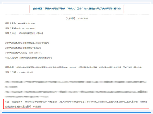 喜讯!贝尔塔壁挂炉实力中标多项“煤改气”工程