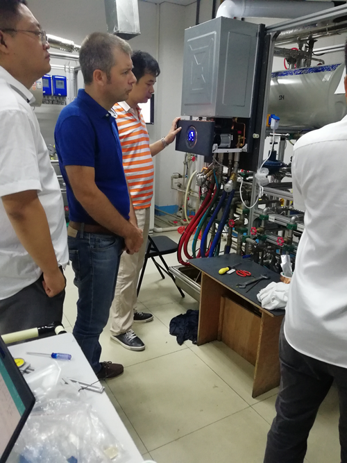 在菲斯顿领导的陪同下,工程师参观了德国菲斯顿在中国生产基地的技术研发中心,详细询问和了解了相关技研情况,就新款的全预混冷凝技术、云管家系统等对菲斯顿在研发上的投入和取得的成绩表示出高度欣赏。他们一边观看现场实验,一边饶有兴趣地与菲斯顿研发人员亲切交谈,现场氛围融洽无间。