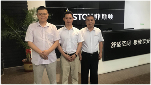 菲斯顿董事长黄爱明(中)、菲斯顿营销总监谷马昌(右)、中企盟·搜狐主编唐建奎(左)在菲斯顿公司合影