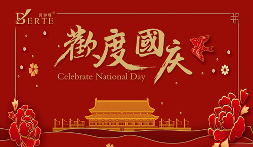 在国庆佳节来临之际,贝尔塔全体员工祝各位经销商家人们、消费者朋友们:国庆快乐!家庭美满幸福!事业前程似锦!