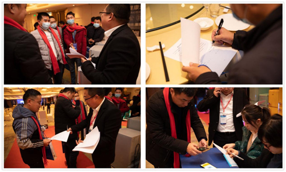 心动不如行动。事不宜迟,万众期待的签约仪式一经宣布开始,便得到了现场经销商的积极响应,大家争先恐后地前往下单签约台,势要为门店带回更多高品质、高规格的臻品。在签约后,心满意足的经销商们也自发前往产品展区,观摩靓丽新品、体验产品功能、汲取产品资讯,对津晶新品形成全面的认识。