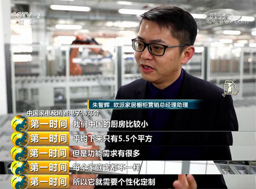 欧派家居橱柜营销总经理助理朱智辉向央视记者介绍消费者需求动向
