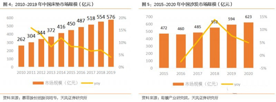 (2)床垫:根据 CSIL 的统计,发达国家床垫渗透率达到85%,而中国床垫渗透率仅60%。