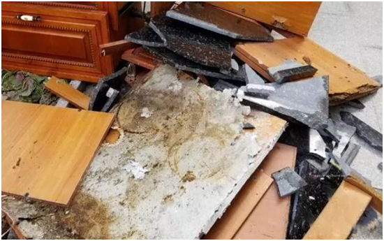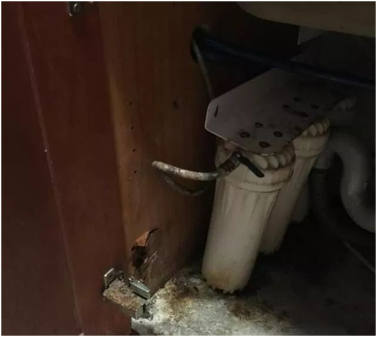 全部拆除后,发现木质橱柜在内部都变形发霉了!触目惊心!