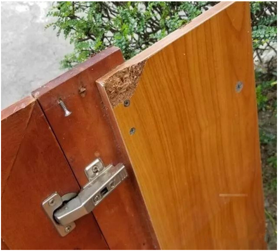 打开橱柜门后,金玉其外败絮其中的品质马上暴露出来了!这就是客户毫不犹疑换厨柜的终极原因。