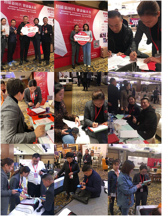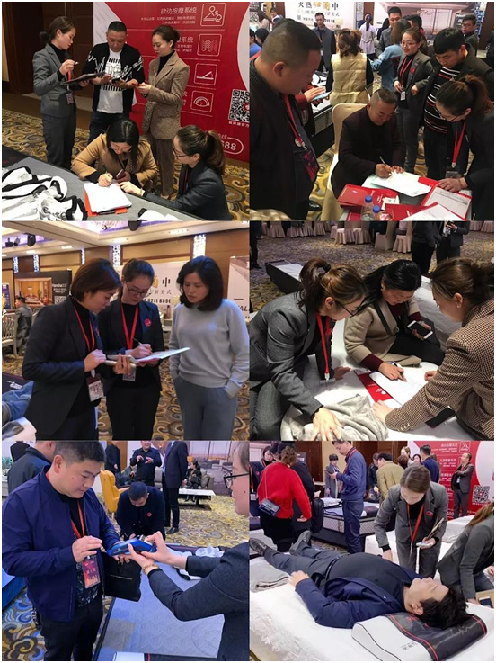 招商会现场,益脉通展位人头攒动,益脉通核心专利产品“律动按摩床垫”和“温控艾灸理疗床垫”吸引了数百名经销商客户的了解和体验,受到了广大家居经销商的认可和赞许!凭借益脉通独特的产品优势、品牌优势、营销管理优势及多渠道合作模式,益脉通品牌吸引了数百人体验床垫产品,以及数十家家居行业经销商的签约加盟。