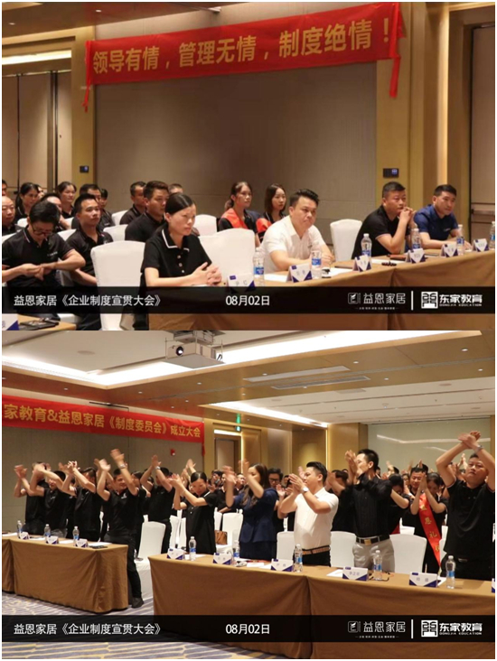 为进一步提高企业规范化管理水平,提升管理效率,8月2日,益恩家居联合东家教育共同举办了的益恩家居《企业制度宣贯大会》,全体益恩家人们出席了本次会议。