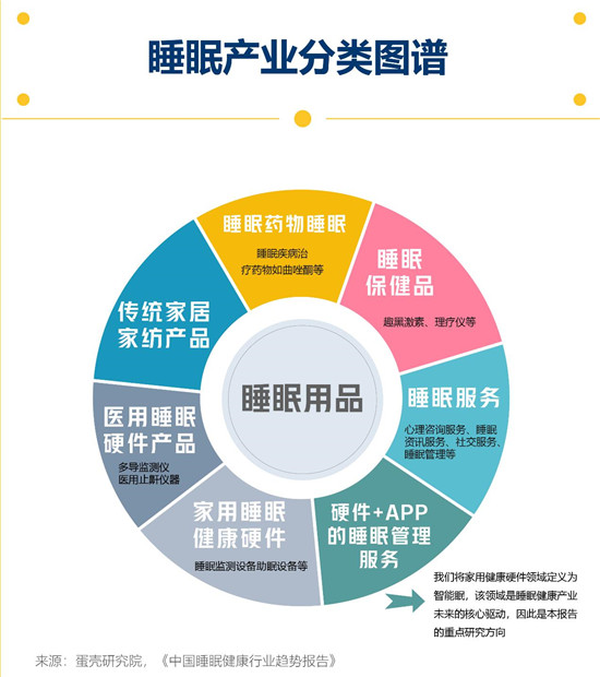 睡眠产业,可进一步分为睡眠用品、睡眠药品、睡眠保健品、睡眠服务,其中,包括家居产品在内的睡眠用品是核心大类。