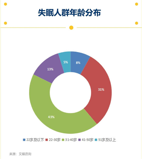《2021年运动与睡眠白皮书》指出,中国有超3亿人存在睡眠障碍。此外,22-40岁的中青年群体最容易失眠,人群占比高达74.3%;其中,31-40岁最多(43.4%),22-30岁其次。
