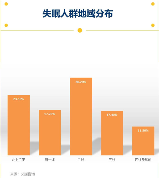 此外,一二线城市失眠的人更多,人群占比约七成。