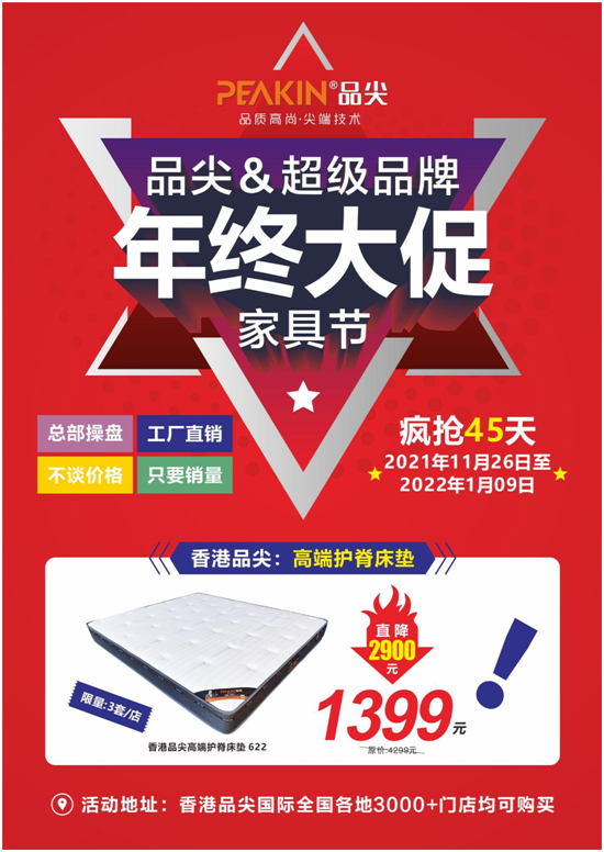 在2021年的尾声,品尖家具特推出“品尖&超级品牌年终大促家具节”暖心福利活动。忙碌了一年的您,除了忙着工作,也要记得给自己一张好床垫,让身心得到放松。品尖床垫以科学设计改善睡眠状况,助力舒睡一整晚,让一天的疲惫在甜美的睡梦中得到治愈。