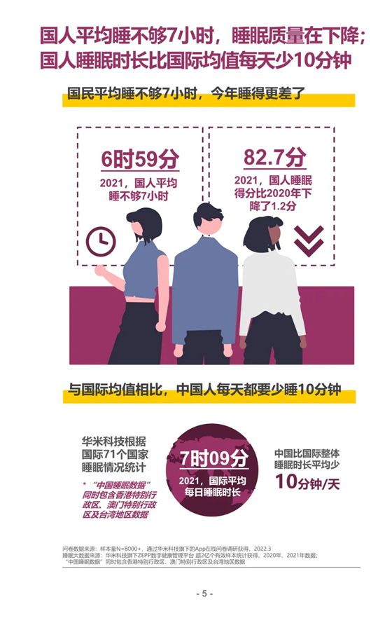 无从打破的睡眠障碍,难以获得的优质睡眠,成为了大众的新焦虑。根据《2022国民深睡&运动生活方式白皮书》的数据统计,八成以上国人有睡眠障碍,在2021年一整年中,国人平均睡不够7小时,实际平均睡眠时长仅为6小时59分,离“睡眠新国标”的及格线仅差1分钟。