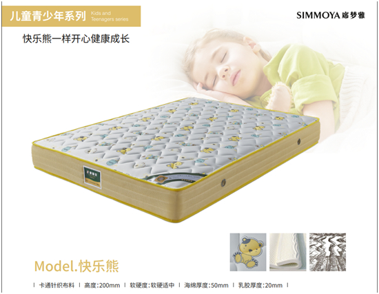第三,儿童时期是骨骼发育的重要阶段,此时睡过硬或过软的床垫都不利于孩子的脊椎发育。过硬的床垫不能完全贴合身体,无法为身体提供有效的支撑,影响孩子骨骼生长;而床垫太软,则容易造成脊椎过分弯曲而变形,也不利于孩子的骨骼生长。