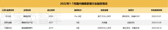2022年上半年,睡眠家居赛道融资事件达3起,涉及床垫、枕头等品类。