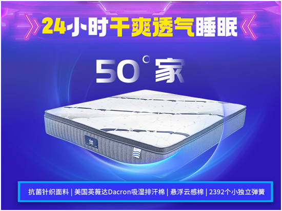 此外,星港“50°家”整张床垫包含了2392个小独立布袋弹簧,能够做到点对点支撑,顺应不同身形,科学释压护脊。
