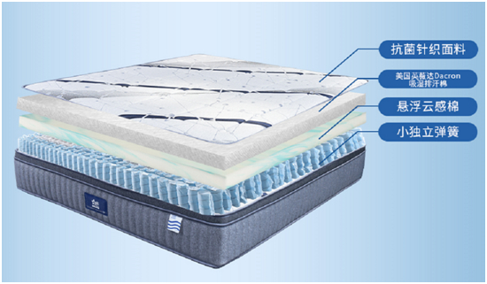 为了让睡眠更加舒适,星港50°家床垫还采用了悬浮云感棉材料和抗菌防螨针织面料。其内部形成了一个自由循环的微气候环境,具有极强的透气性能,能有效去除潮湿。表面亲肤柔软,具有抗菌性能,从内到外打造出一个健康的睡眠环境。