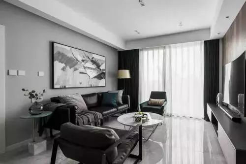 ▲灰色的墙体和地板,让整个空间色调以高级灰为主,因此窗帘色调与整体色调保持一致,选择深一个色度或浅一个色度亦可。