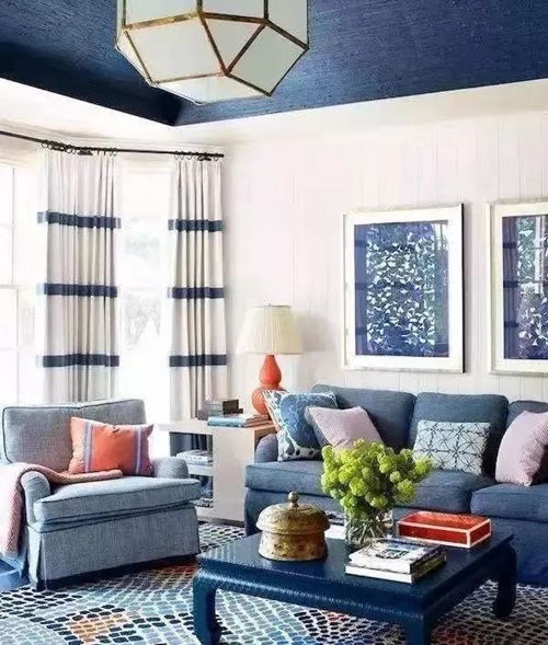 ▲深蓝色家具搭配白色窗帘,让空间更加明亮大气。