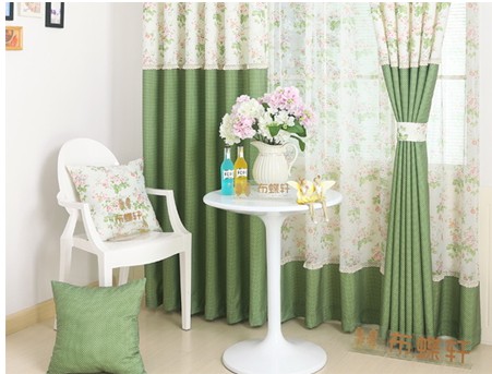 明媚的花开满了米白的底,或拼接或混合绿底白色小点装饰,纱帘的底端也别出心裁的接了一大段绿底白点的布帘呼庆,缝合处还有一条细致的棉质白花边。韩式田园风格轻松打造,侧拼款窗帘还可以按自己心情或右或左调换挂,是不是很诱人?甜美清新气氛,睁开第一眼就发现有着“流动”的大自然展现在自己的眼前,心情能不好吗?