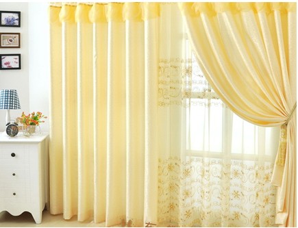 秀气的小玫瑰纹提花布,接一段透明的绣花纱,缀一条精致的宫廷皱,没有单调,没有沉闷;有的是如清晨那一缕投射进屋的阳光般温暖动人。简约中透着清新素雅的风格,让人第一眼看到就爱上了它。用上这款窗帘来打造卧室,那种感觉简极是妙不可言。