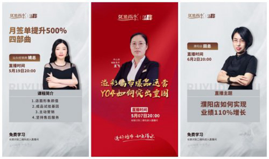 近期开展直播活动的三家门店,都是如鱼得水溢彩经销商团队中的佼佼者,此次直播内容也是紧紧围绕着过去一阶段取得的优异成绩,为更多经销商伙伴分享宝贵经验。如鱼得水舟山店,4月份Y04号墙布爆品活动排名全国前十墙布;如鱼得水汕头店,4月10日-5月5日累计签单30单;如鱼得水濮阳店,4月1日-5月20日总业绩高达67.74万元,对比去年,业绩同期对比实现110%的增长!为什么她们如此优秀?在直播间里,她们给出了答案。