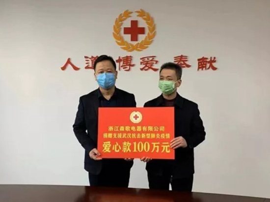 森歌电器捐赠100万元人民币,支援湖北武汉新型冠状病毒感染的肺炎疫情防控工作。