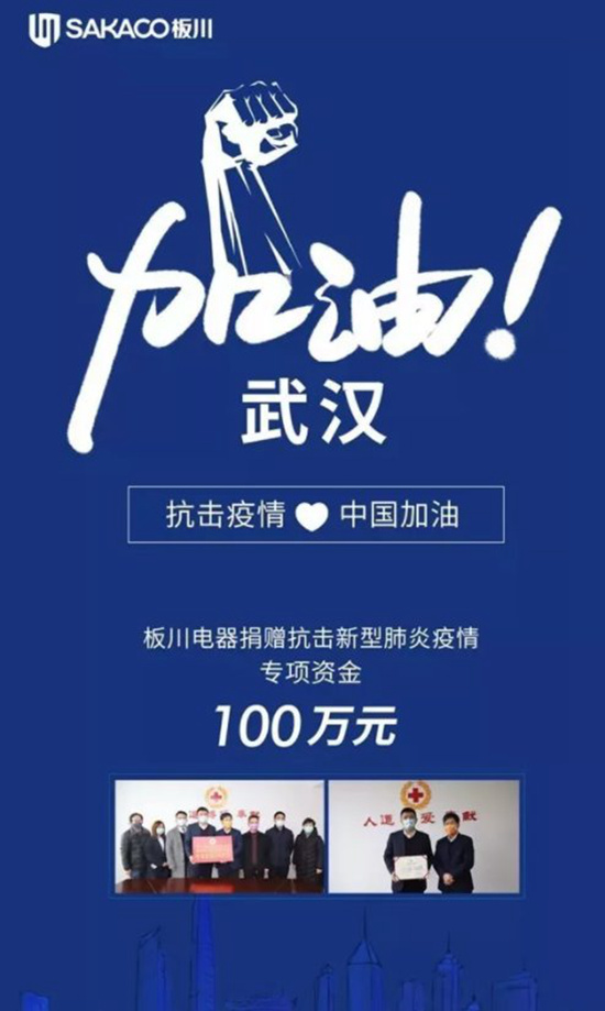 浙江板川电器有限公司捐赠100万元,作为抗击新型肺炎疫情专项资金。
