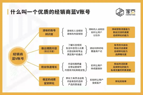 做抖音都需要一个人设定位,对于企业来说,需要打造一个专业的家居品牌形象,以区别于个人IP。这时可以申请一个抖音蓝V账号,以提高可信度和增加流量投放。