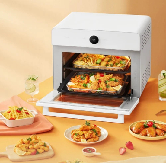 其次,30L超大容量也是它极具吸引力的优点之一,毕竟空气炸锅虽好,但其天生的小容量设置决定了它无法应对多人就餐的需求。米家智能空气炸烤箱就不一样了,30L的容量即便和正常的台式烤箱相比也毫不逊色,3层烤位,2层同出,3~8个人同时就餐都能轻松搞定。无论是大家庭还是聚会场景,都不必因为烹饪食物太少、太慢而捉襟见肘。