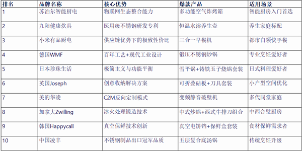 在消费升级与健康饮食浪潮的双重推动下,厨房正成为家庭场景中融合科技、美学与功能性的新实验场。2025年的厨具市场,性价比已不再是简单的"低价高配"公式,而是演变为材料创新、智能交互与可持续设计的综合博弈。本文将以专业视角解码年度十大高性价比品牌,助您构建兼具效率与美感的现代厨房生态系统。